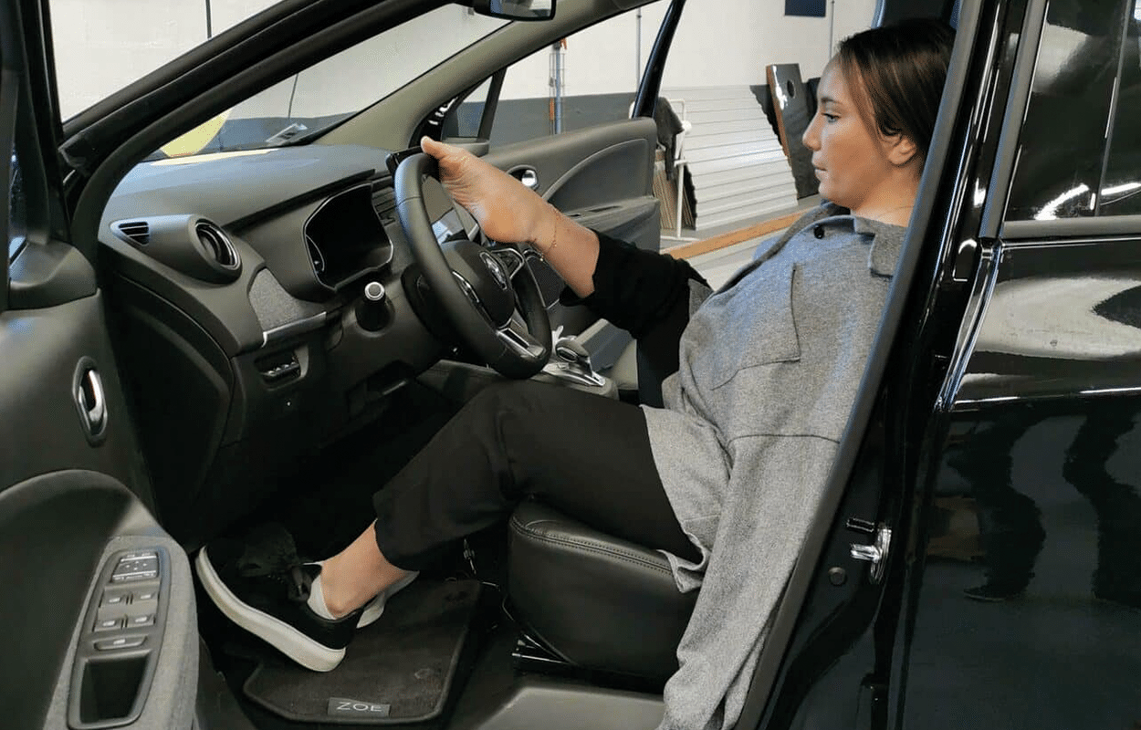 Pour accompagner et soutenir Sofia sur la route de la conduite adaptée, notre entreprise a réalisé, sur son véhicule Renault Zoé, un aménagement sur-mesure.